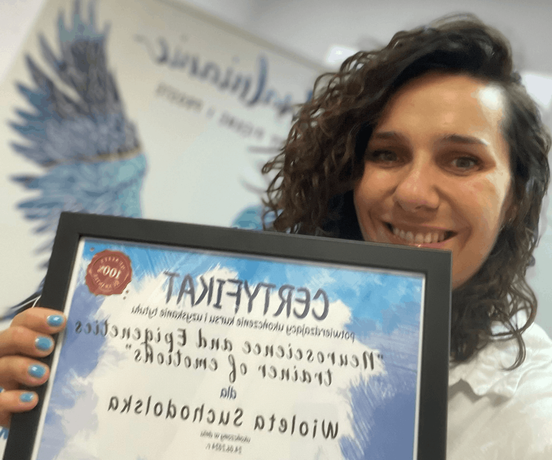 - Jestem certyfikowaną trenerką pracy z emocjami w Akademii Trenera Emocji “Neuroscience and Epigenetics trainer of emotions” Beaty Kaczor.